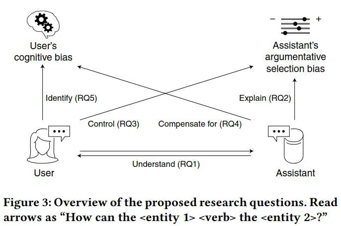 Many questions of public interest do not have a single answer but come with a set of choices, each of which with its pros and cons.An “objective” information system can help explore the underlying argument space, and, if equipped with a conversational interface,it can create the experience of lively discussions resembling those from our daily lives. However, users will (subconsciously) extend the provided information by assumptions that adhere to their cognitive biases. In this regard, note that biases do not arise only from the underlying data or the employed algorithms, but also from the way the information is presented—especially in audio-only channels.Our paper brings attention to bias-related challenges of conversational interfaces for argument search systems. We identify research questions that address these challenges, and we propose ideas and methods to tackle them.